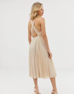 Asos design pleated bodice halter clearance midi dress