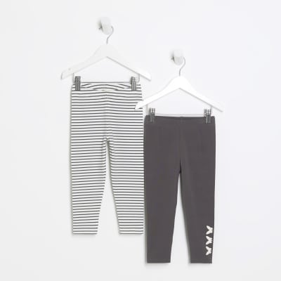 Girls clearance striped leggings, Mini girls cream striped leggings 2 pack River Island clearance