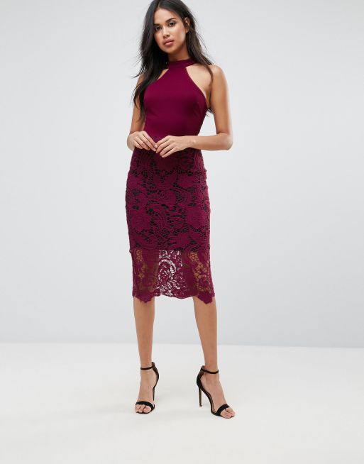 AX Paris Racer Neck Midi Dress With Crochet Lace Skirt And