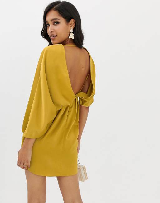 ASOS DESIGN mini dress in satin with asymmetric kimono sleeve