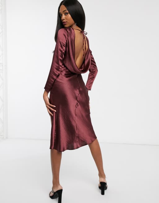 ASOS DESIGN long sleeve cowl back midi dress