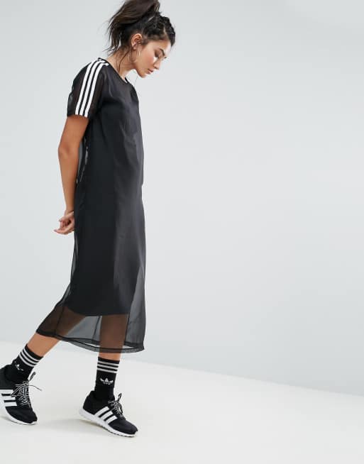 adidas Originals Black Midi Dress With Sheer Mesh Overlay