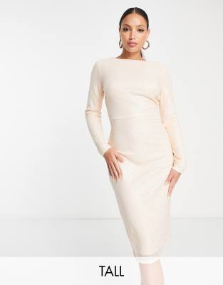 In The Style Tall exclusive sequin long sleeve midi dress in champagne Neutral