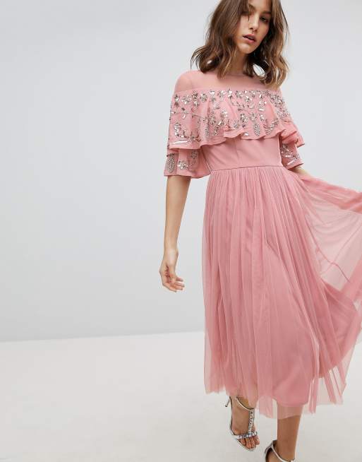 Maya sheer detail sequin clearance cape overlay detail midi dress, Maya Deluxe Women s Midaxi Dress Ladies Ruffle Frilly Floral clearance