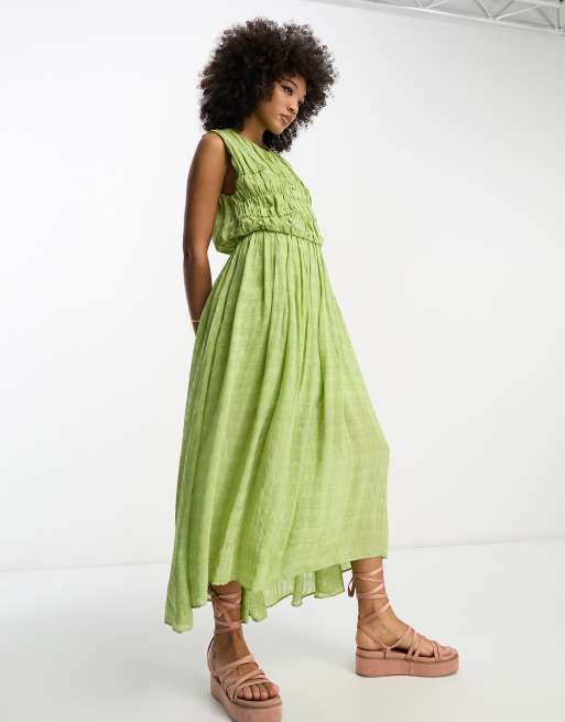 ASOS DESIGN gathered textured high low midi dress in pistachio