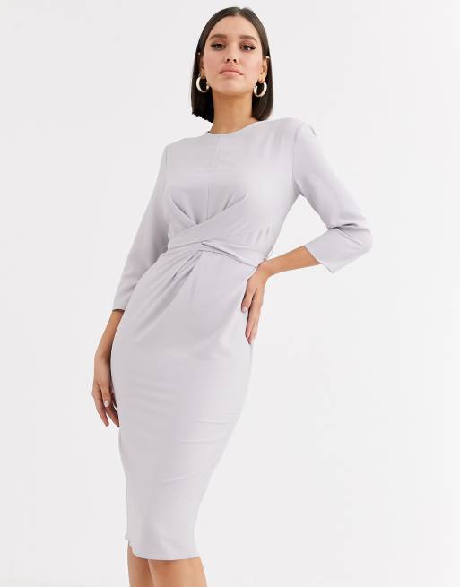 Asos design tie wrap around clearance midi dress, ASOS DESIGN v neck midi dress with twist wrap detail in charcoal clearance