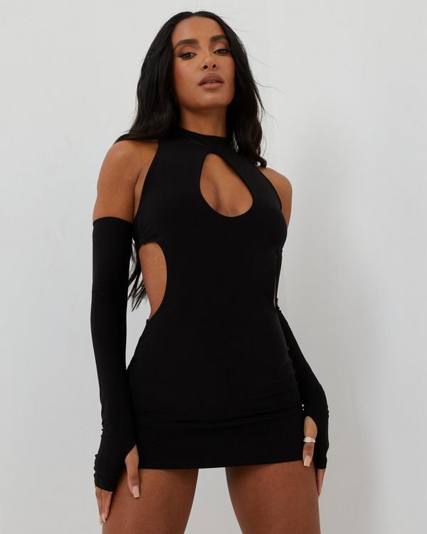 Key Hole Cut Out Mini Bodycon Dress With Sleeves In Black