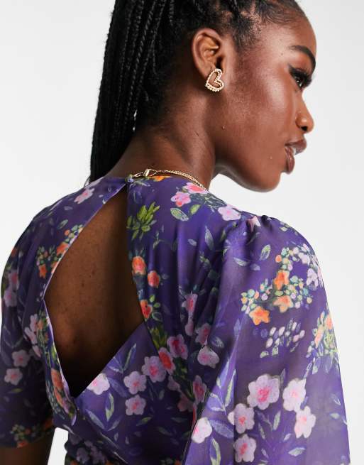 Hope Ivy open back drop hem midi tea dress in navy floral ASOS