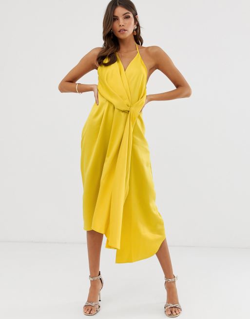 Asos design minimal drape clearance midi dress in satin, ASOS DESIGN high neck drape minimal cut out midi dress in plum clearance