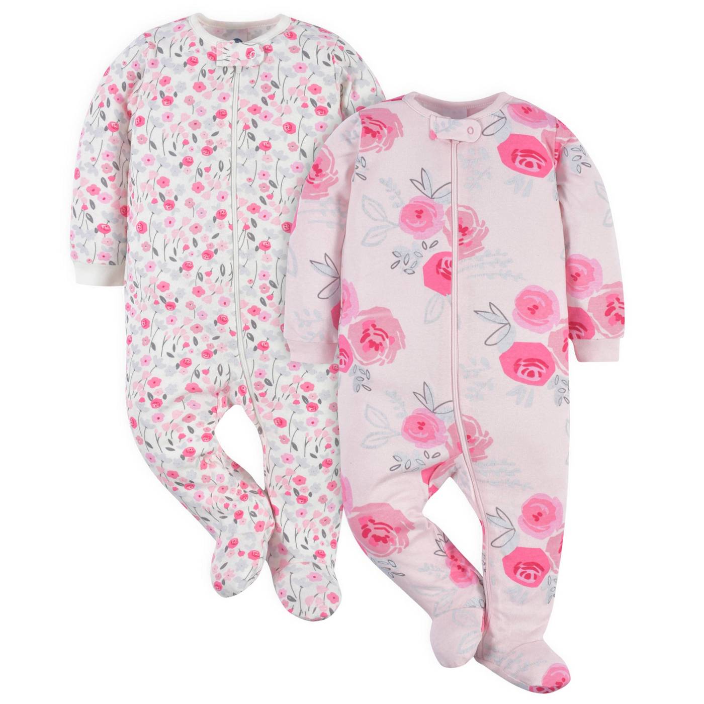 Gerber Baby Girls Pink Floral Sleep N Plays 2 pk Shop Outfits