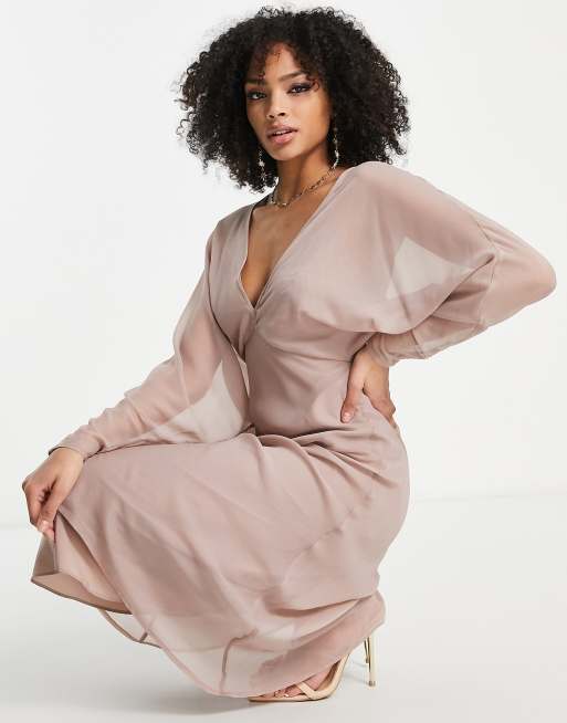ASOS DESIGN soft batwing midi dress in dusty mauve