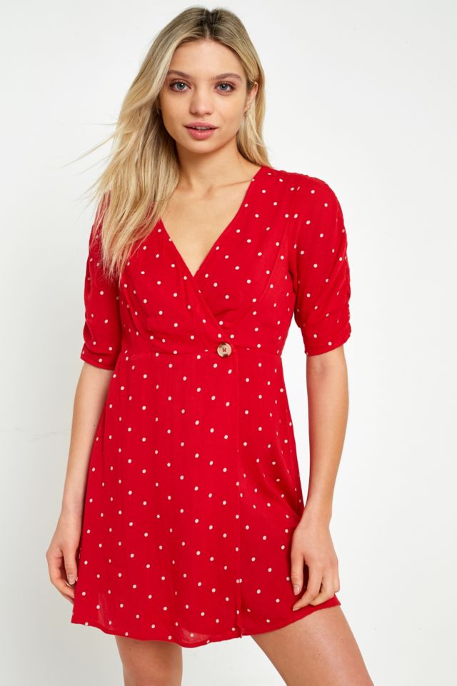 Urban outfitters red clearance wrap dress, UO Jessica Cap Sleeve Wrap Dress 35 Lightweight Travel Dresses clearance