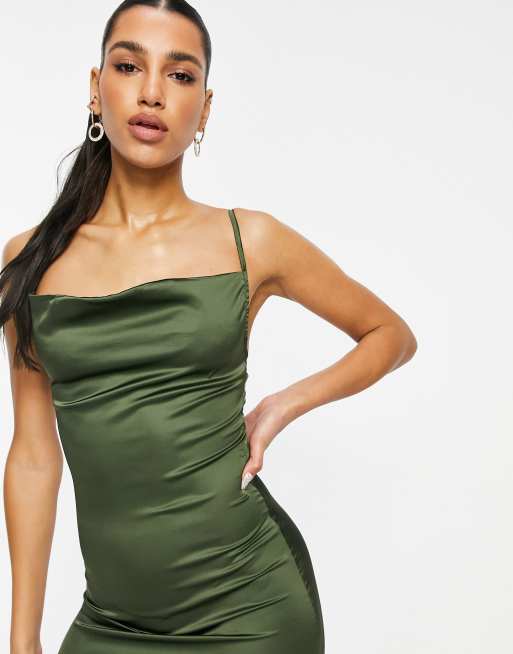 Olive and ivy clearance cowl midi dress, Parisian satin cami strap midi dress with cowl neck in olive ASOS clearance