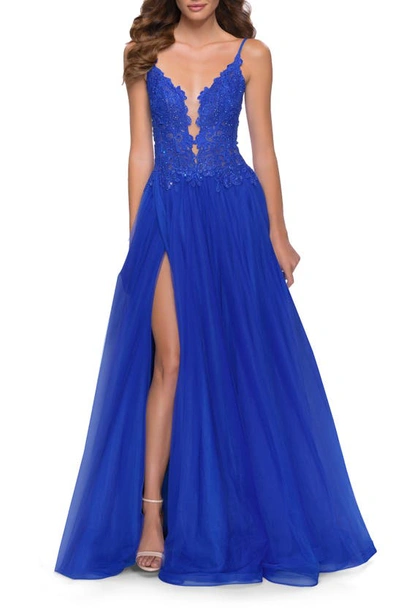 Embroidered illusion plunge clearance ball gown, Embroidered Lace Plunge Bodice Dress Emma Bridals clearance