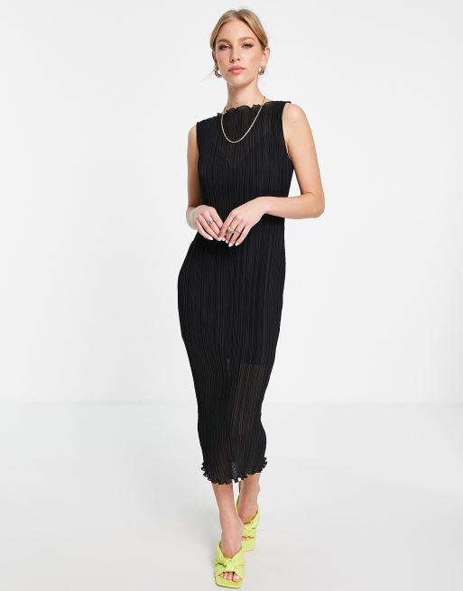 Black plisse midi clearance dress, ASOS DESIGN plisse midi dress in black ASOS clearance