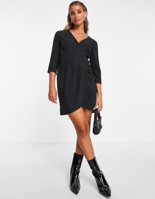 ASOS DESIGN drape mini dress with wrap skirt in textured fabric in