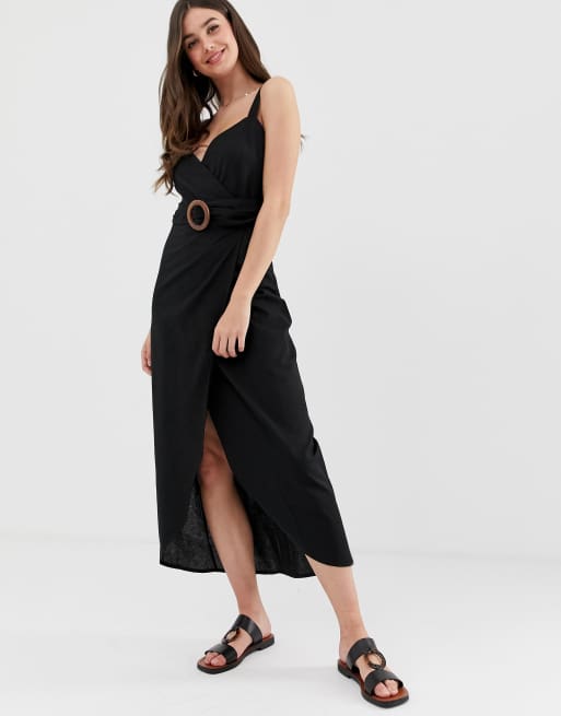 Asos design wrap maxi clearance dress with buckle belt, ASOS DESIGN wrap maxi dress with buckle belt in stripe clearance