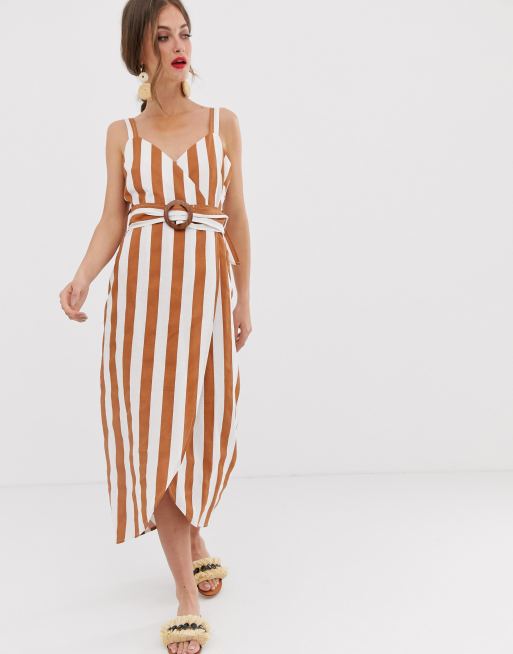 ASOS DESIGN wrap maxi dress with buckle belt in stripe