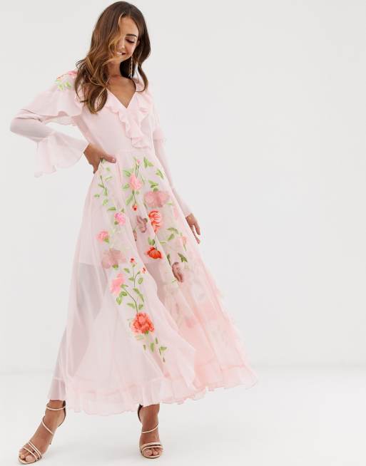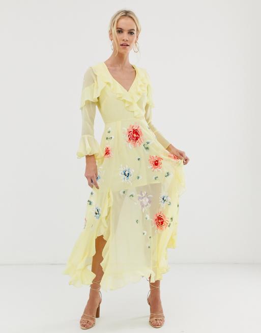 Asos design embroidered clearance wrap maxi dress