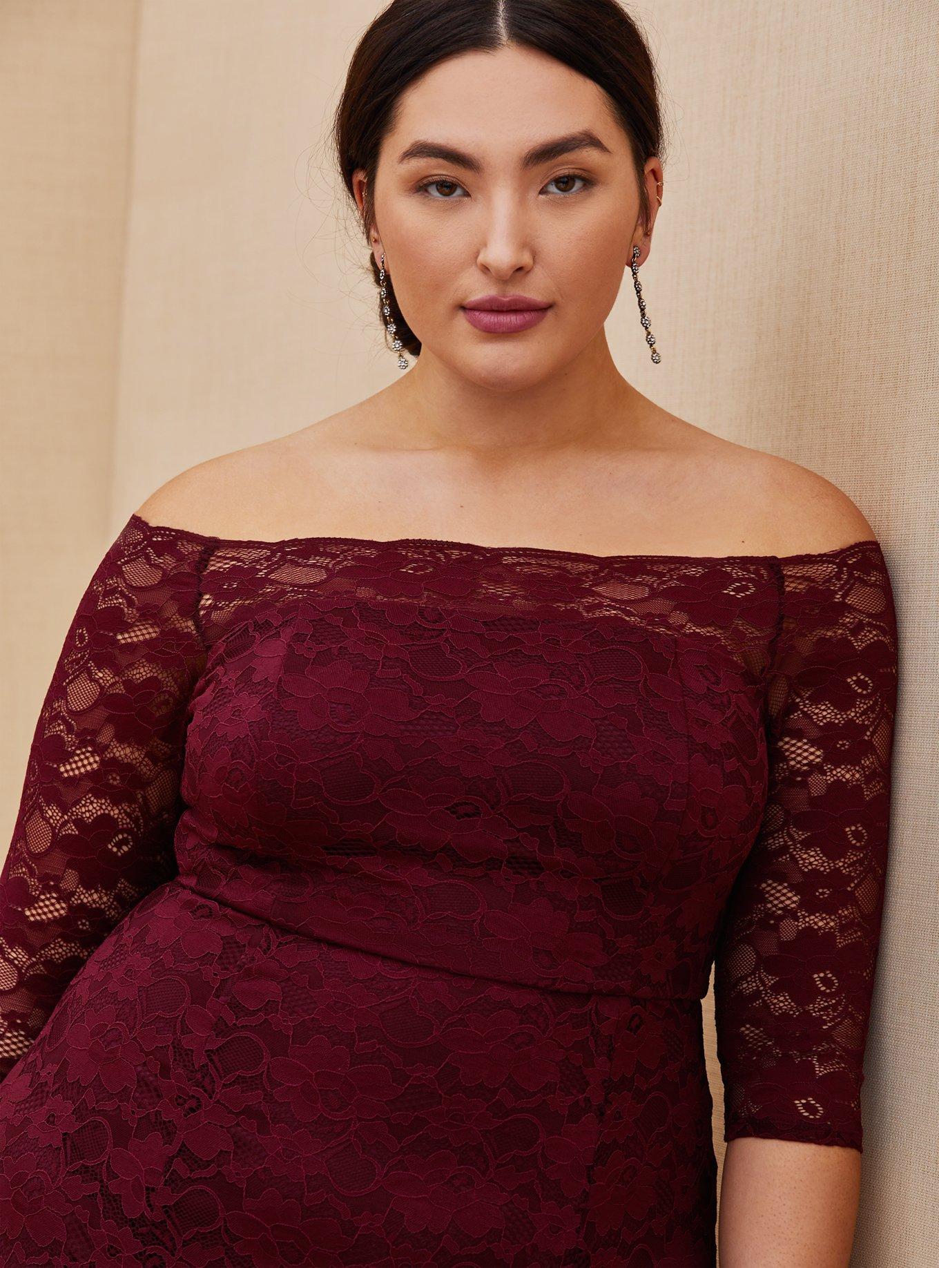 Torrid clearance evening dresses, Plus Size Special Occasion Burgundy Red Lace Off Shoulder Maxi clearance