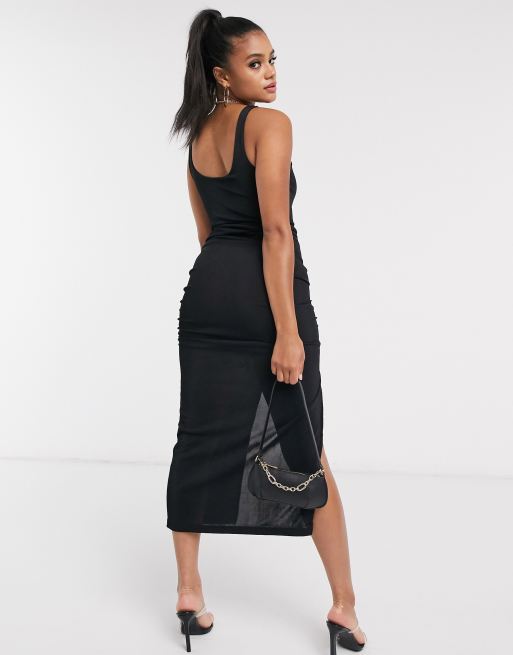 Aria Cove sleeveless ruched tie front midi dress with thigh split in black