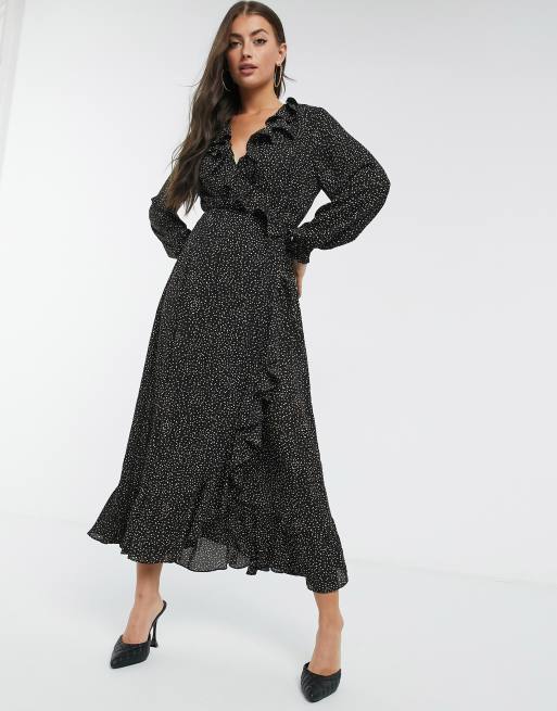 Just Female Imogene maxi wrap dress in black dot