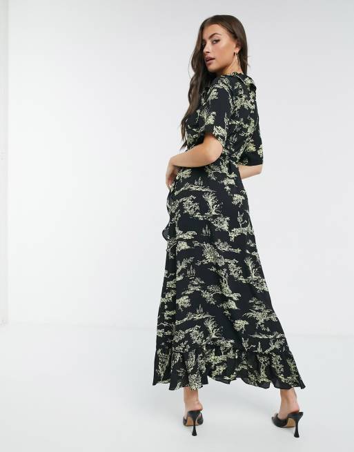Just Female Mako maxi wrap dress in black print ASOS