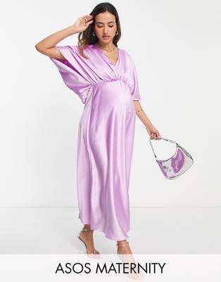ASOS DESIGN Maternity wrap front batwing sleeve satin midi dress