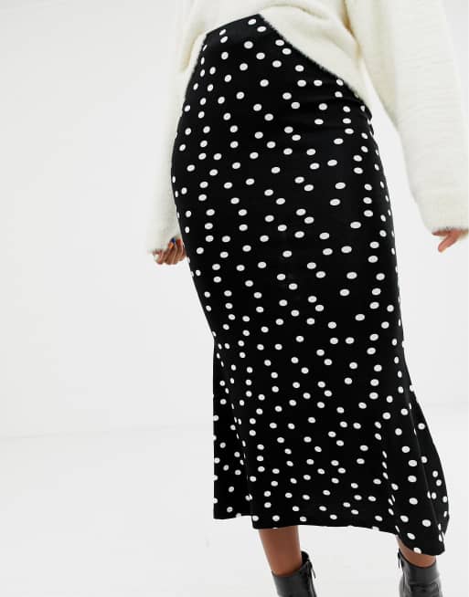 ASOS DESIGN midi skirt with kickflare in polka dot