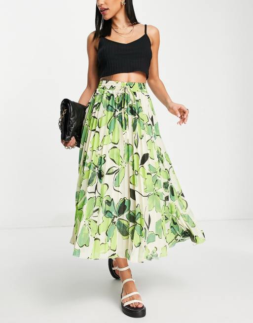 ASOS DESIGN pleated midi skirt with shirred waistband in bright abstract floral print