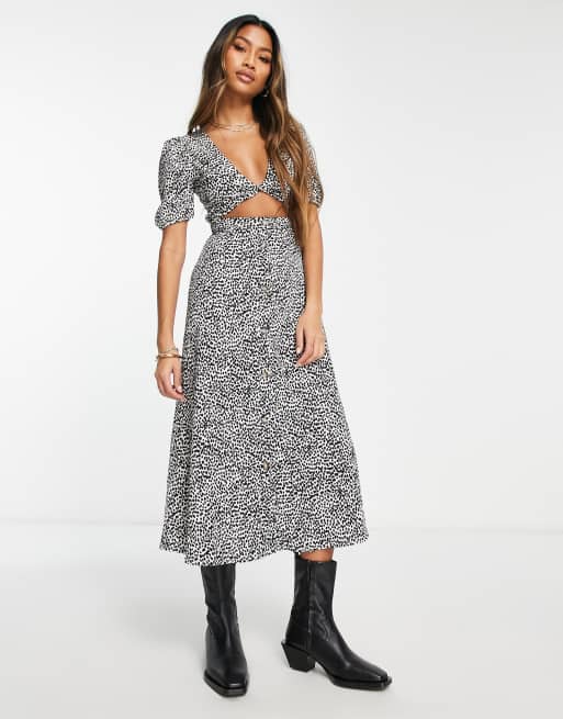 ASOS DESIGN short sleeve midi tea dress with twist front and
