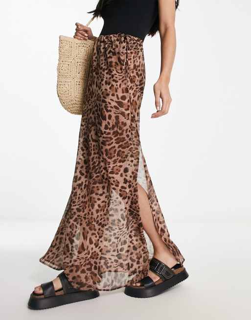 Miss Selfridge beach chiffon leopard tie side maxi skirt