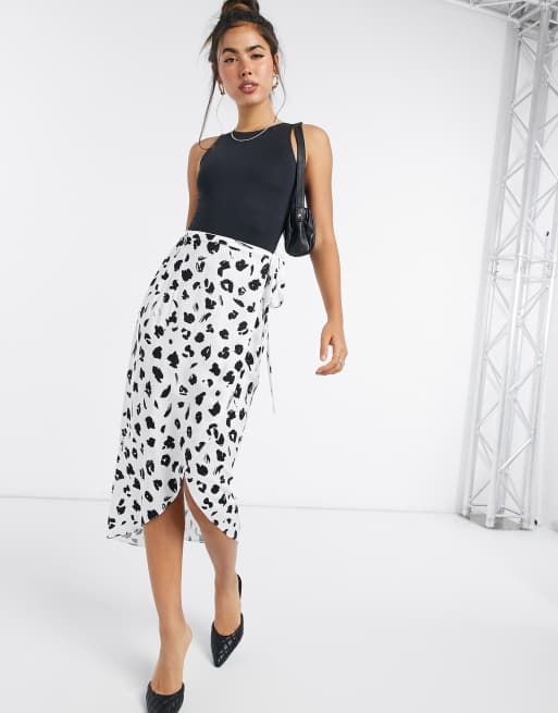 ASOS DESIGN wrap midi skirt in white mono leopard print