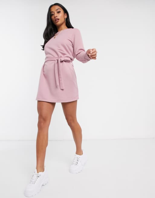 Missguided Petite exclusive sweater dress with tie waist in pink