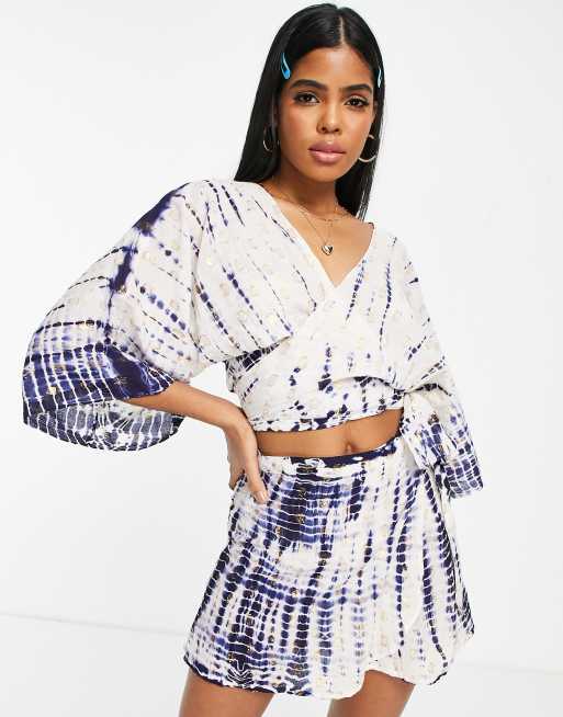 South Beach beach wrap top and skirt set in blue tie dye