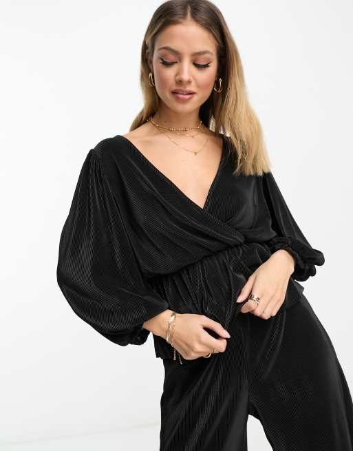 River Island co ord plisse wrap top in black
