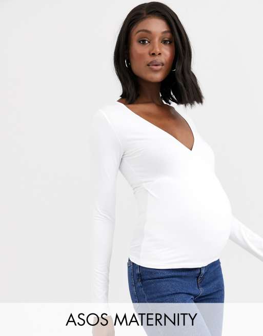 ASOS DESIGN Maternity deep wrap top in white