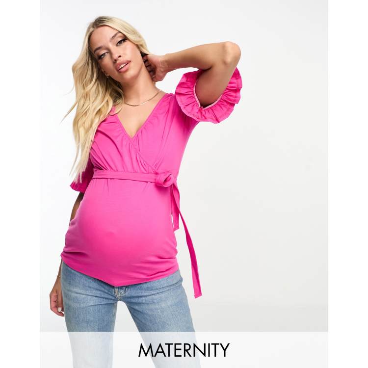 Mamalicious Maternity short sleeve wrap top in pink