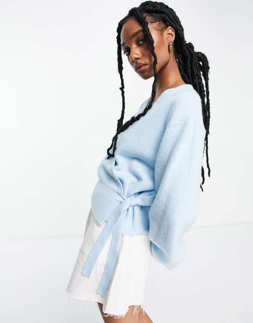 Blue clearance wrap sweater, ASOS Fluffy Ballet Wrap Cardigan in Blue Lyst UK clearance