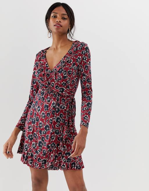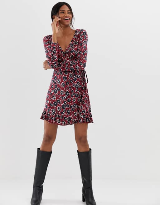 Floral Print Ruffled Wrap Mini Dress SWS Clothing amp