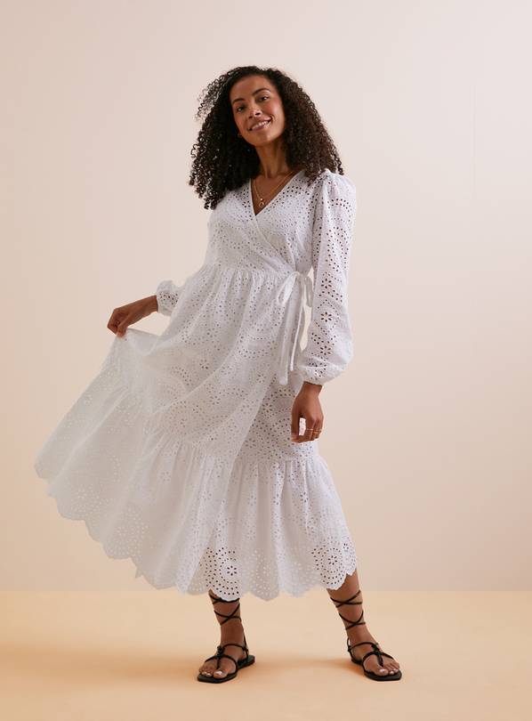 White broderie wrap clearance dress