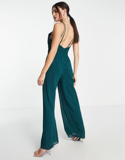 Emerald green formal clearance jumpsuit, TFNC Bridesmaid pleated halter neck wide leg jumpsuit in emerald clearance