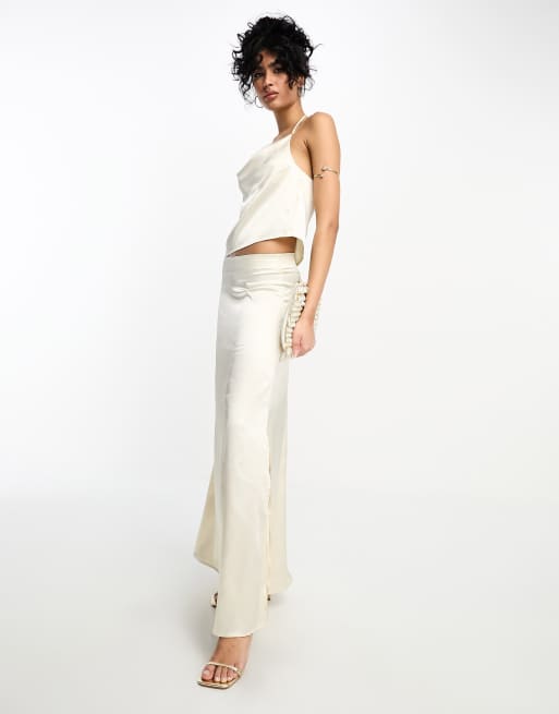 Vila Curve Bridal satin cami top and midi skirt co ord in cream ASOS