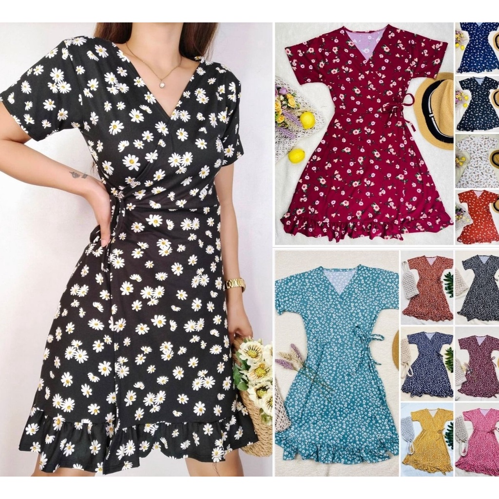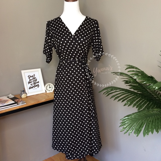 Wrap around dress clearance shopee, Midi polka black wrap dress maxi dress Shopee Philippines clearance