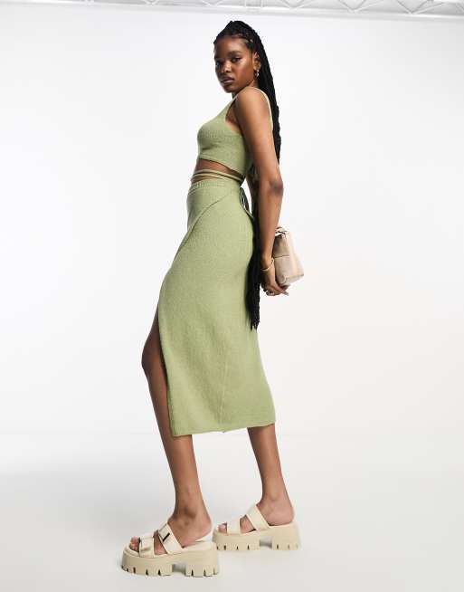 Knit midi co clearance ord, ASOS DESIGN knitted midi skirt with wrap detail in textured yarn clearance