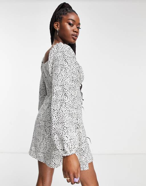 Missguided milkmaid skater dress with long sleeve in dalmatian