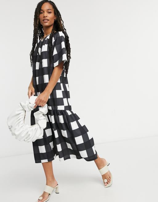 ASOS DESIGN midi dress with pep hem in oversized black and white check print