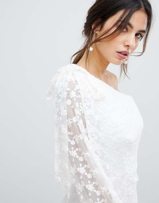 Keepsake Retrospect one sleeve lace midi dress