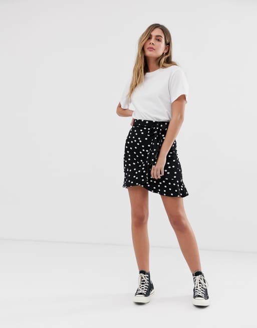 Women s Polka Dot Ruffle Wrap Maxi Skirt Boohoo UK