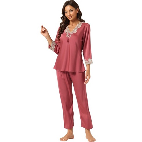 Allegra K Women s Soft Night Suit Pajama Sets Light Red Small Target